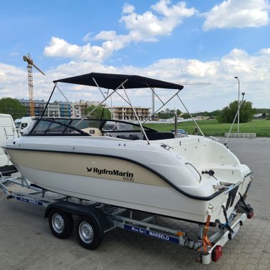 HydroMarin 6930 to największa łódź motorowodna typu Daycruiser, dla miłośników wędkowania, jak i dla osób lubiących spędzać czas z rodziną na wodzie. Imponująca wielkość jednostki o szerokości 2,50 m i długości 6,83 m, to oznaka niesamowitych możliwości dla tych, którzy pragną poruszać się komfortowo z zawrotną prędkością. Dzięki wielkiemu pokładowi można pomieścić wszystko, czego potrzebuje się na dalekie wyprawy. Kabina zapewnia uniwersalność przy każdej pogodzie, a także umożliwia długie rodzinne eskapady z noclegiem na morzu, bez konieczności cumowania. Łódź motorowodna ma wyprofilowane, mocne dno typu V, dzięki któremu można w pełni kontrolować sterowanie jednostką, dawać świetne osiągi przy ekonomicznym zużyciu paliwa. HydroMarin 6930 cechują wygodne siedzenia, przemyślane układy przestrzenne i wysokiej jakości wykończenie. Wszystko to sprawia, że podróżowanie staje się czystą przyjemnością. Bezpieczne i stabilne prowadzenie gwarantuje spokojne rejsy nawet w niekorzystnych warunkach, pozwalając na pełną swobodę na wodzie. HydroMarin 6930 jest wyposażona w potężny silnik o mocy 250KM, dzięki któremu z łatwością można rozpędzić się na wodzie i odkrywać nowe miejsca. Bezpieczeństwo i stabilność to priorytet do cieszenia się pełnym spokojem i relaksem nawet podczas szybkich manewrów. Niezawodność i wytrzymałość tej jednostki pozwolą cieszyć się nieograniczonymi możliwościami podróżowania. HydroMarin 6930 spełnia oczekiwania najbardziej wymagających podróżników i entuzjastów mocy na wodzie. Zapewnia wspaniałe przygody, doskonałe doświadczenia i niezapomnianych chwile na wodzie. Nadaje się dla miłośników sportów na wodzie, takich jak: wakeboarding, narciarstwo czy pływania na sprzęcie ciągniętym za łodzią.